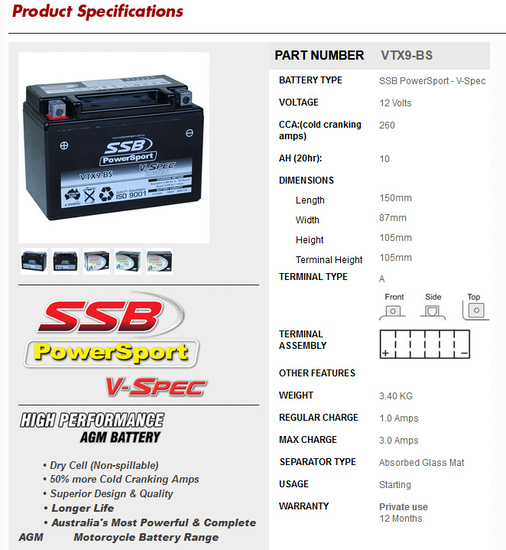 SSB Powersport V-Spec Battery (4-VTX9-BS)
