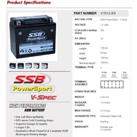 SSB Powersport V-Spec Battery (VTX12-BS)