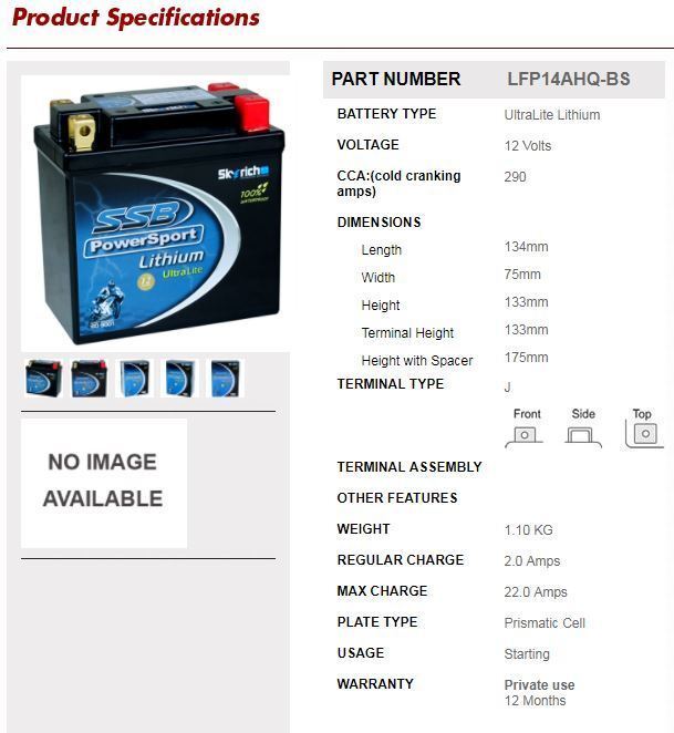 • SSB’s lithium batteries are made using prismatic cells making them not only safe to use, but also boasts higher CCA, better cyclic properties and have a longer life.