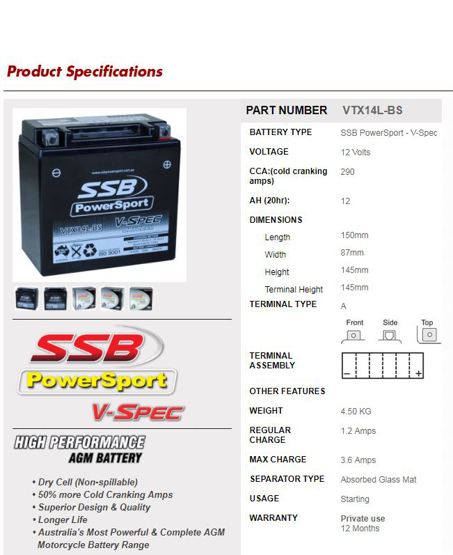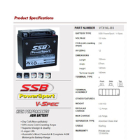 SSB Powersport V-Spec Battery (VTX14L-BS)