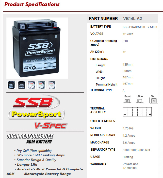SSB Powersport V-Spec Battery (VB14L-A2)