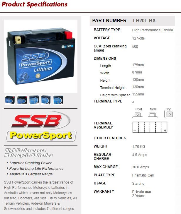 • SSB Powersport Lithium Batteries are designed as a drop-in direct replacement for lead-acid motorcycles.