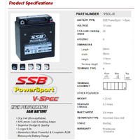 • V-spec batteries are completely spill and leak proof, and can be used upside down.