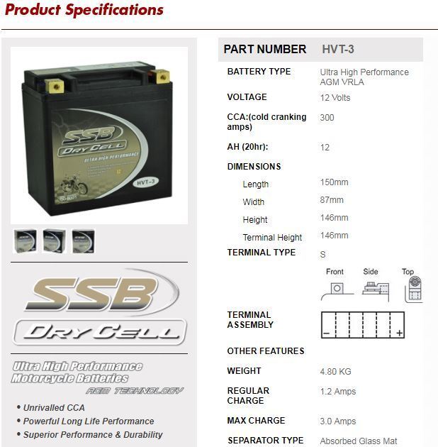 SSB Powersport Ultra High Performance Dry-Cell Battery (HVT-3)