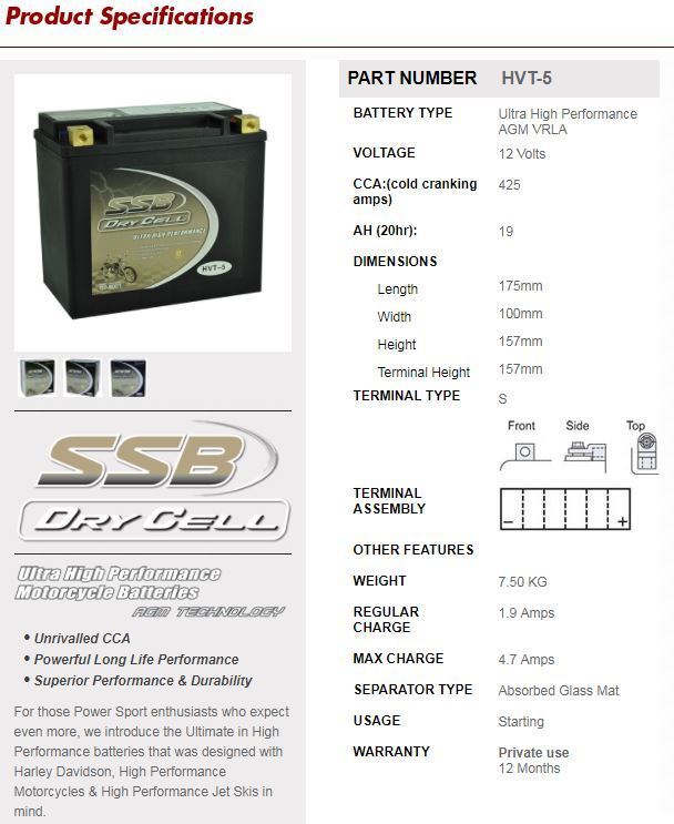 SSB Powersport Ultra High Performance Dry-Cell Battery (HVT-5)