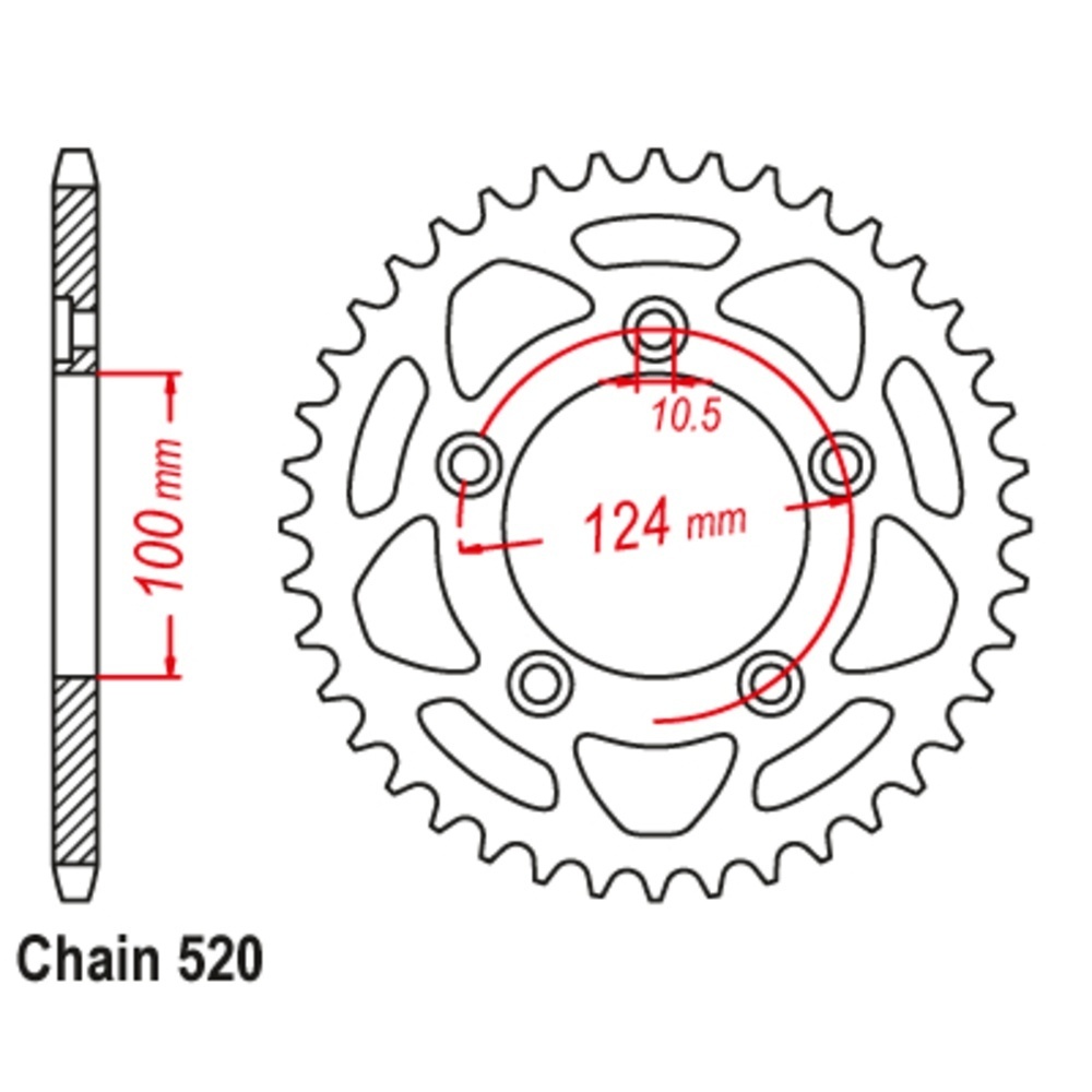 • Larger tooth radius reduces chain friction and extends chain wear life.