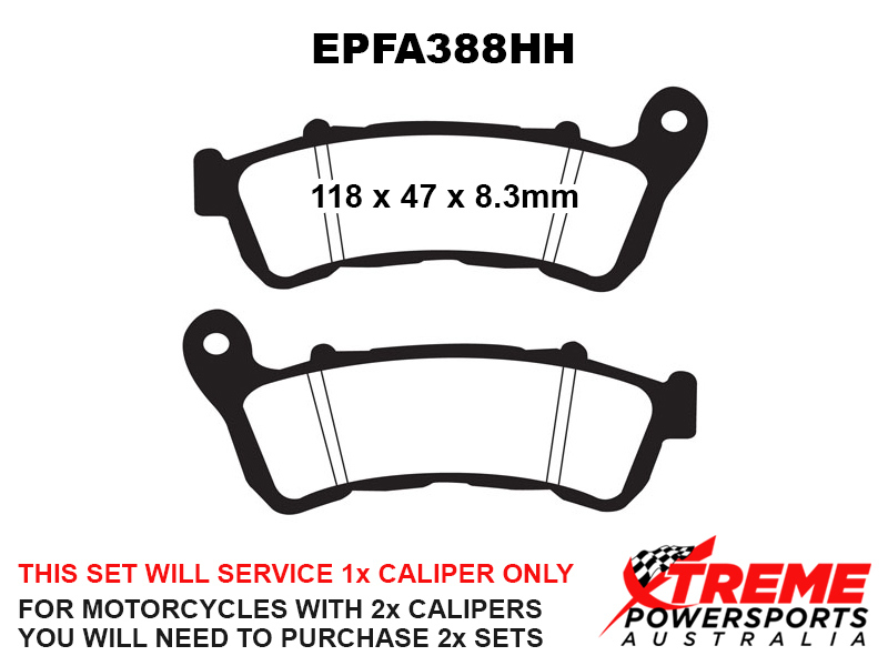 This set of brake pads will service 1x brake caliper only. For motorcycles with 2x brake calipers, you will need to purchase 2x brake pad sets.