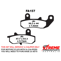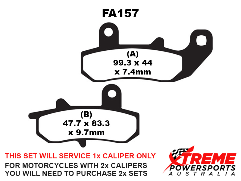 This set of brake pads will service 1x brake caliper only. For motorcycles with 2x brake calipers, you will need to purchase 2x brake pad sets.