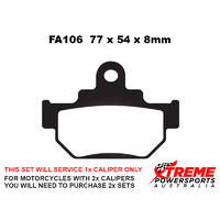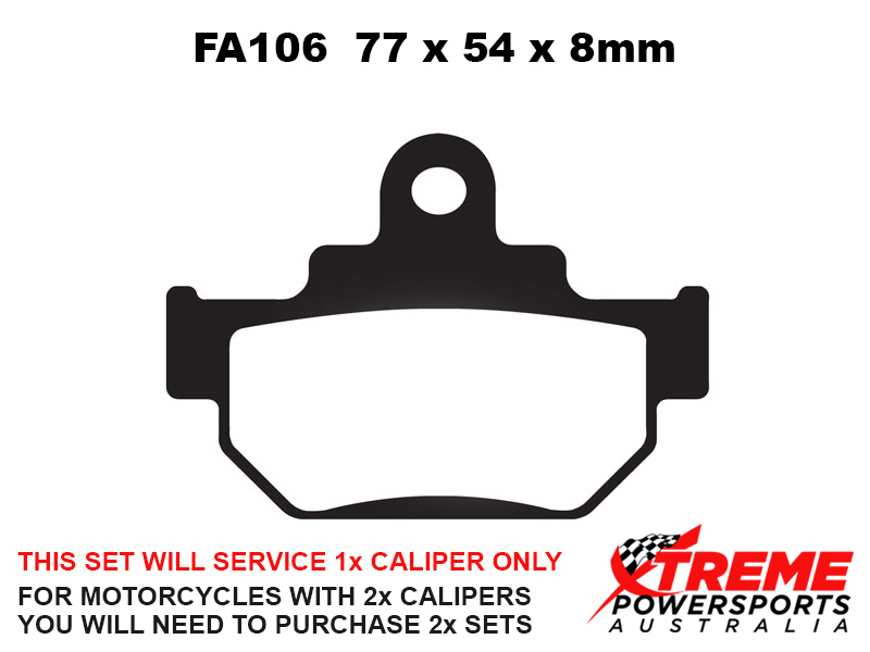 This set of brake pads will service 1x brake caliper only. For motorcycles with 2x brake calipers, you will need to purchase 2x brake pad sets.