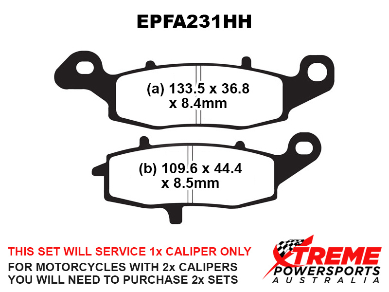 This set of brake pads will service 1x brake caliper only. For motorcycles with 2x brake calipers, you will need to purchase 2x brake pad sets.