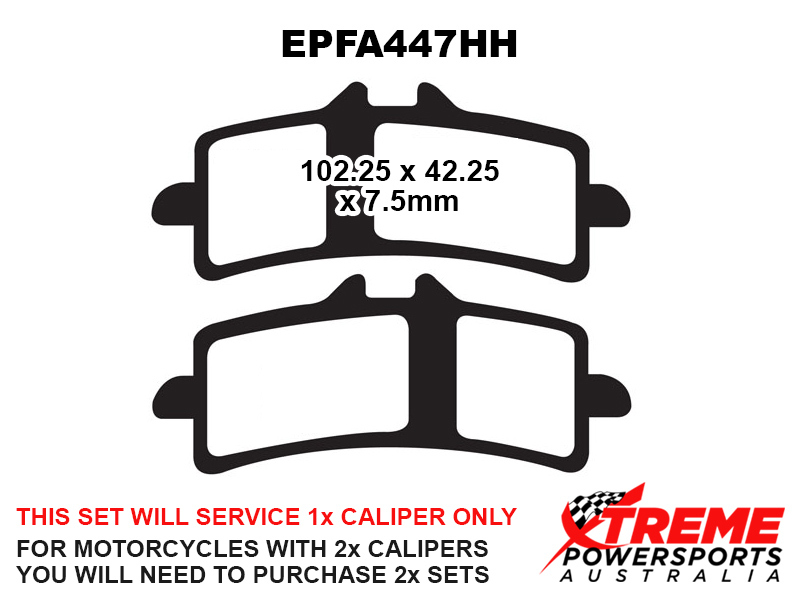 This set of brake pads will service 1x brake caliper only. For motorcycles with 2x brake calipers, you will need to purchase 2x brake pad sets.