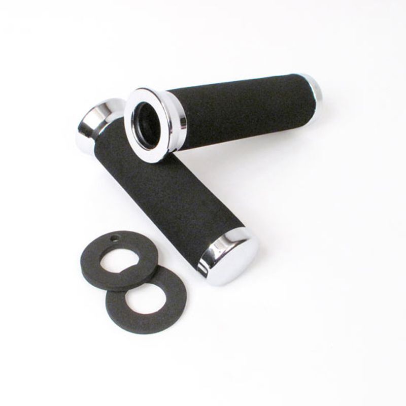 Manufactured with a chrome-plated base and end cap, along with the soft but durable foam cover. The Whites Foam Grips will absorb vibration preventing finger tingles while adding a custom look to your ride. The perfect grips for those wanting a unique look while also ensuring rider comfort.