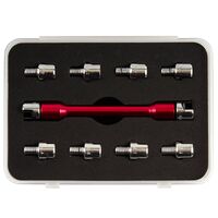 The Whites Deluxe Spoke Wrench Kit is a convenient kit of 10 different sized spoke wrench heads. The kit includes a bar that the heads screw into for quick and easy maintenance, perfect for the motorcycle enthusiasts garage and professional workshop.