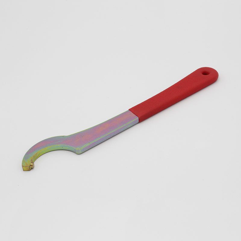 The Whites Exhaust Nut Wrench is designed to remove or install the exhaust nut on your BMW. The pin and arched shape of the wrench head are specifically configured to line up to the holes on the nut at the end of the exhaust pipe where it enters the cylinder head, providing ample leverage to loosen or reinstall exhaust nuts in routine maintenance situations. Constructed from steel for strength and durability with zinc plating for corrosion resistance and a rubber handle for exceptional grip and user comfort.