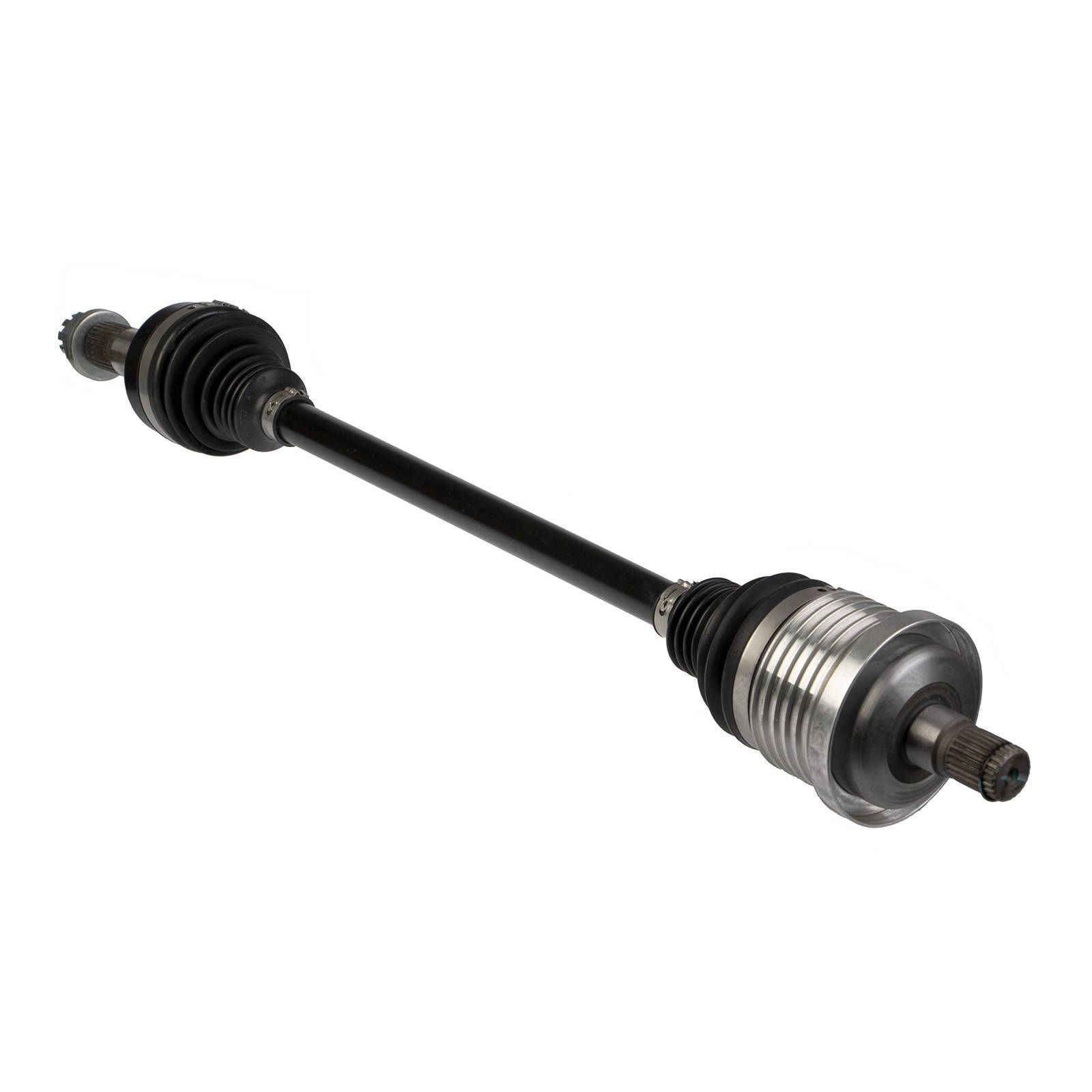Proven performance in the automotive market the Whites CV Axle are produced alongside the worlds biggest brands in the ATV/UTV market. Featuring oversized outer joints that allow up to a 45° swing angle, providing increased suspension travel and strength. Alongside the latest CNC manufacturing process allows up to 45° of travel on the inner joints. The higher strength and longer lasting TPE boots, OTK clamps and moly grease provide the best performance in extreme conditions and extend the life of your axle.