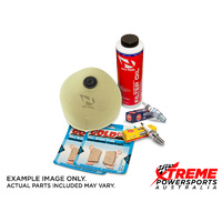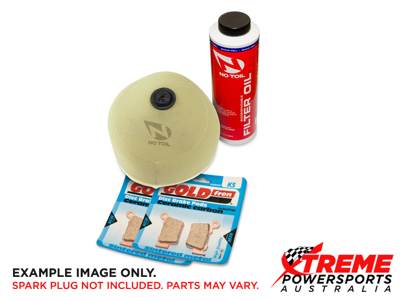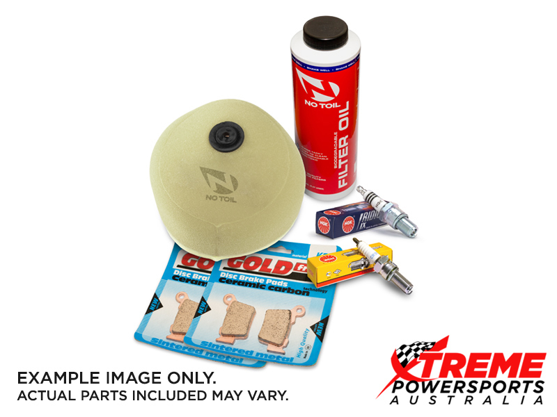 • Kits are made to suit application and may include front and rear brake pads / shoes, air filter, oil filter and air filter oil.
