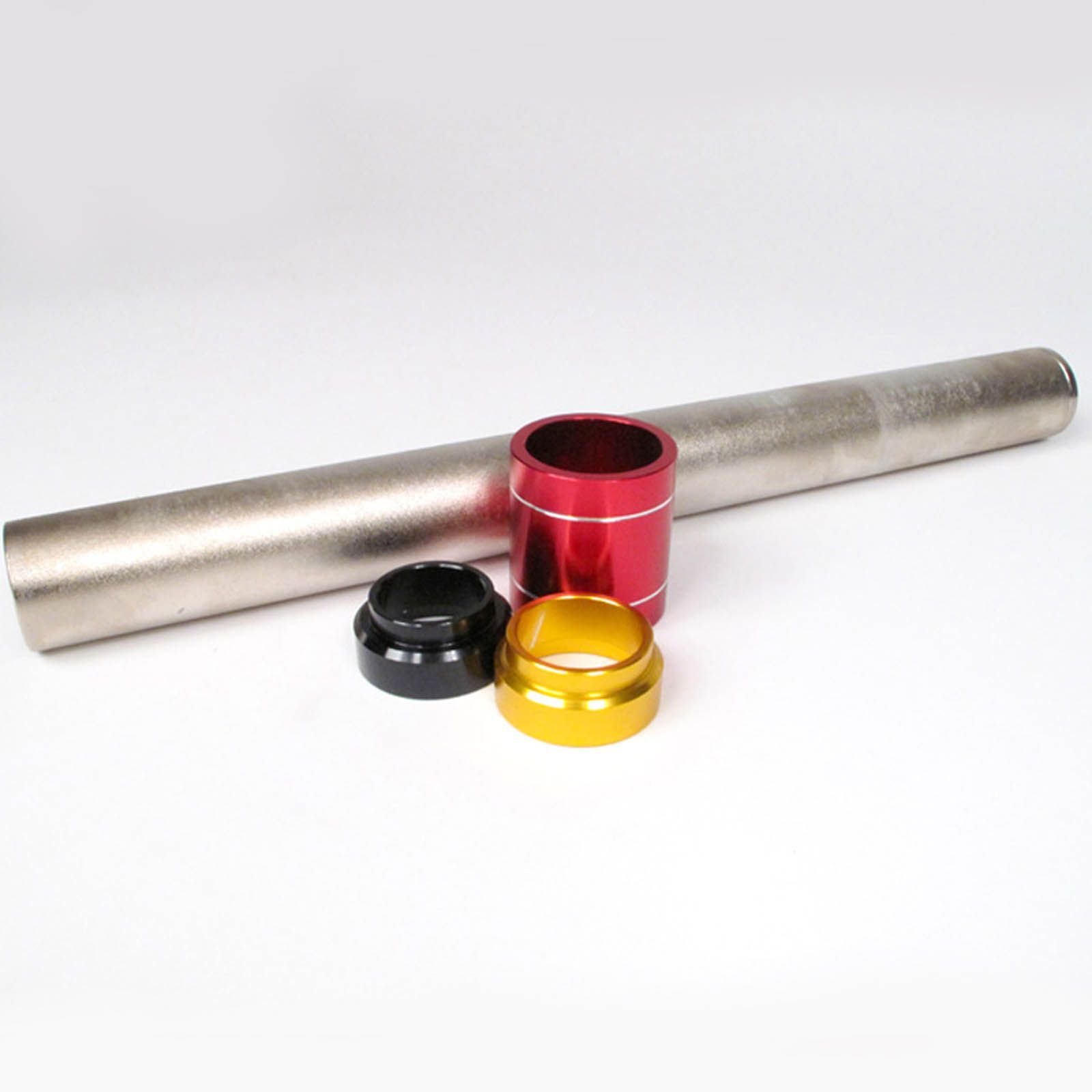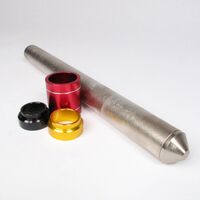 This tool provides a new and safe approach to steering head bearing installation. The aluminium inserts allow lower steering bearings to be installed quickly and accurately. Including three anodised aluminium inserts for different sized steering head bearings and a 14" (35cm) driver manufactured from heat treated steel. All three inserts are anodised a different colour for quick and easy size identification.