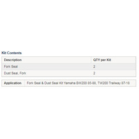 • Kit contains 2x Fork Seals and 2x Dust Seals.