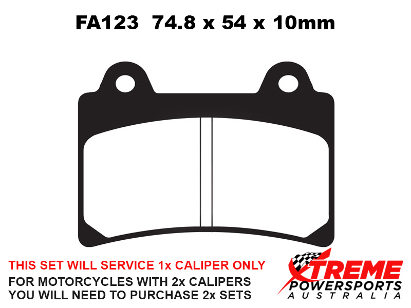 This set of brake pads will service 1x brake caliper only. For motorcycles with 2x brake calipers, you will need to purchase 2x brake pad sets.