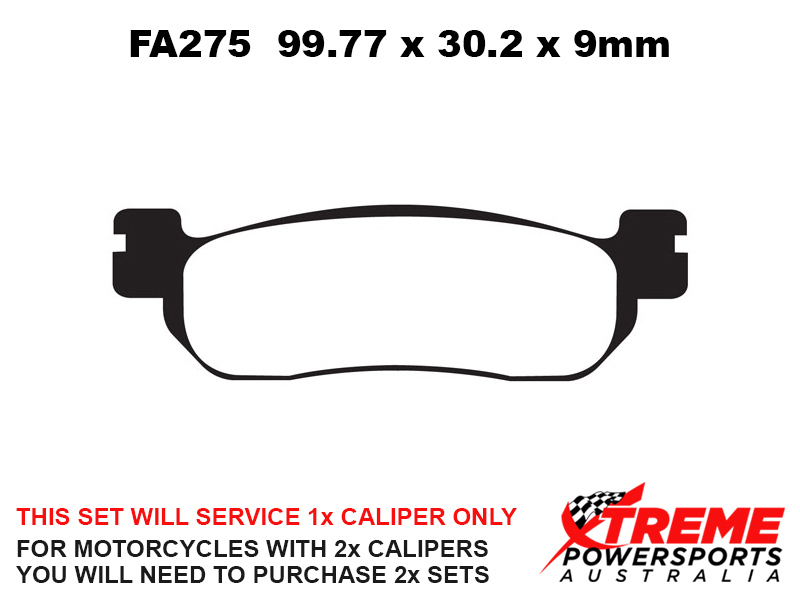 This set of brake pads will service 1x brake caliper only. For motorcycles with 2x brake calipers, you will need to purchase 2x brake pad sets.