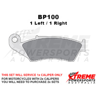 This set of brake pads will service 1x brake caliper only. For motorcycles with 2x brake calipers, you will need to purchase 2x brake pad sets.