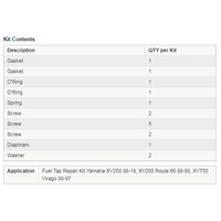 • Fuel tap rebuild kits are intended to be used to repair one fuel tap only.