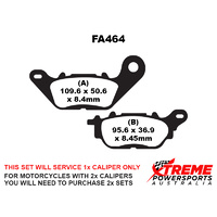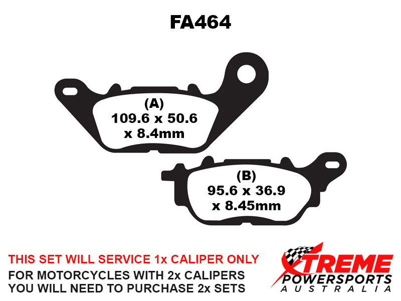 This set of brake pads will service 1x brake caliper only. For motorcycles with 2x brake calipers, you will need to purchase 2x brake pad sets.