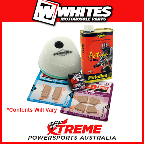 • Kits are made to suit application and may include an air filter, air filter oil, oil filter and brake pads or shoes.
