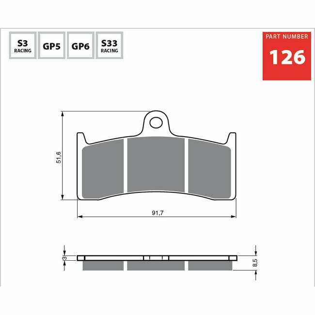 • The S3 sintered compound is optimal for street bikes, dual sport, touring, cruisers. It's recommended on applications with rather larger engines or for people who ride harder than average and want the great stopping power of a sintered brake pad.