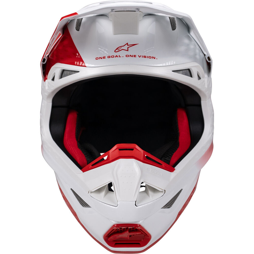 • The result of the unique shell lay-up process employed in the S-M10 construction results in extremely effective impact protection. With a fully equipped helmet testing facility, within Alpinestars Racing Development Center, an exhaustive impact research program has resulted in the Supertech M10 returning linear and oblique impact performance which far improves upon current helmet regulation standard limits. For direct, linear, impact by an average magnitude of 41% and for rotational acceleration, oblique, impact performance by an average of 48%.